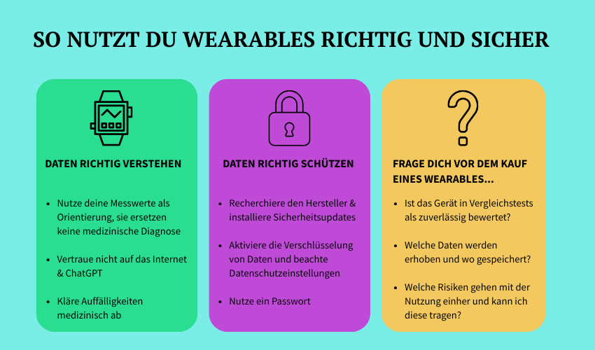 Trotz aller Risiken bieten Wearables erhebliche Potenziale. Der zentrale Nutzen liegt darin, den eigenen Körper besser kennenzulernen und Zusammenhänge zwischen Alltag, Verhalten und Gesundheit sichtbar zu machen. Dieses Verständnis könnte dazu beitragen, das eigene Verhalten bewusster zu reflektieren, anzupassen und gesünder zu leben.