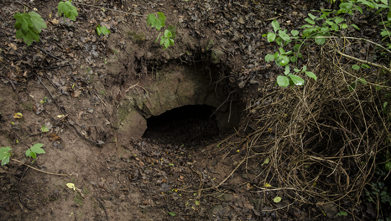 Zwischen den Betonblöcken entdecke ich in der Erde ein kleines Loch von der Größe eines Fuchsbaus. „Ist das der Eingang?“, frage ich. Benjamin nickt und holt eine Stirnlampe aus seinem gewaltigen Rucksack. Da also hinunter.