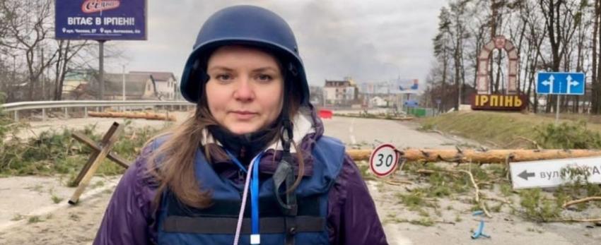 Ich stimme diesem Spruch zu. In der ersten Woche des Krieges erhielt ich einen Kommentar von einer Frau. Sie meinte, ich sei zu involviert in dieses Thema und bräuchte eine zweite Meinung, um journalistische Standards einzuhalten. (Sie atmet kurz ein) Ich habe aus meinem eigenen Fenster gesehen, wie eine Fernsehstation bombardiert wurde. Fünf Menschen sind dabei gestorben. Ich weiß nicht, was für eine zweite Meinung ich in dieser Situation brauche.
